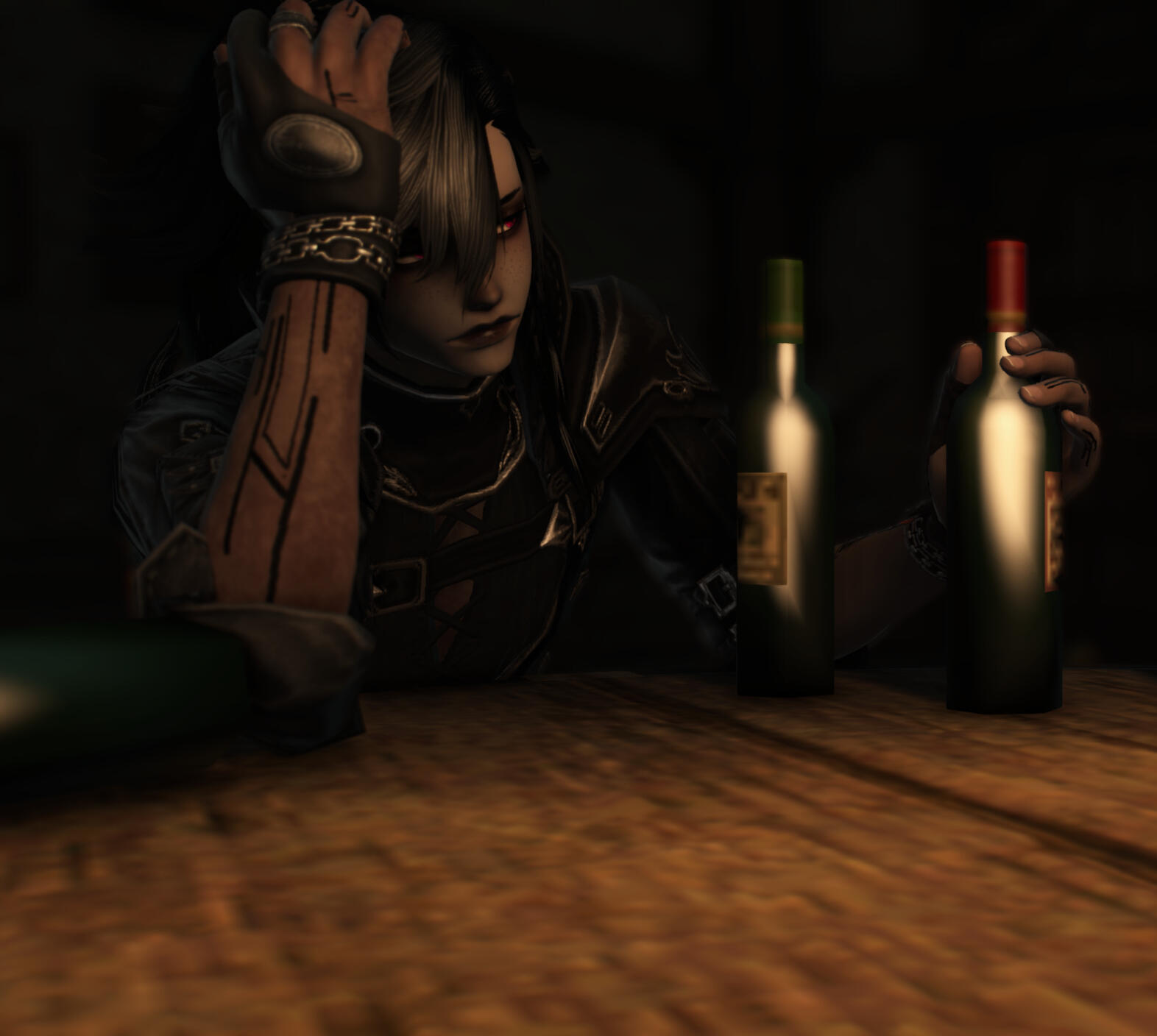 With nothing of value to his name and no access to his aether, he approached the Forgotten Knight as a vagrant, hopeful for labour jobs. He spent his days working for various merchants and his nights on a straw mattress in one of the many shelters beneath the inn.