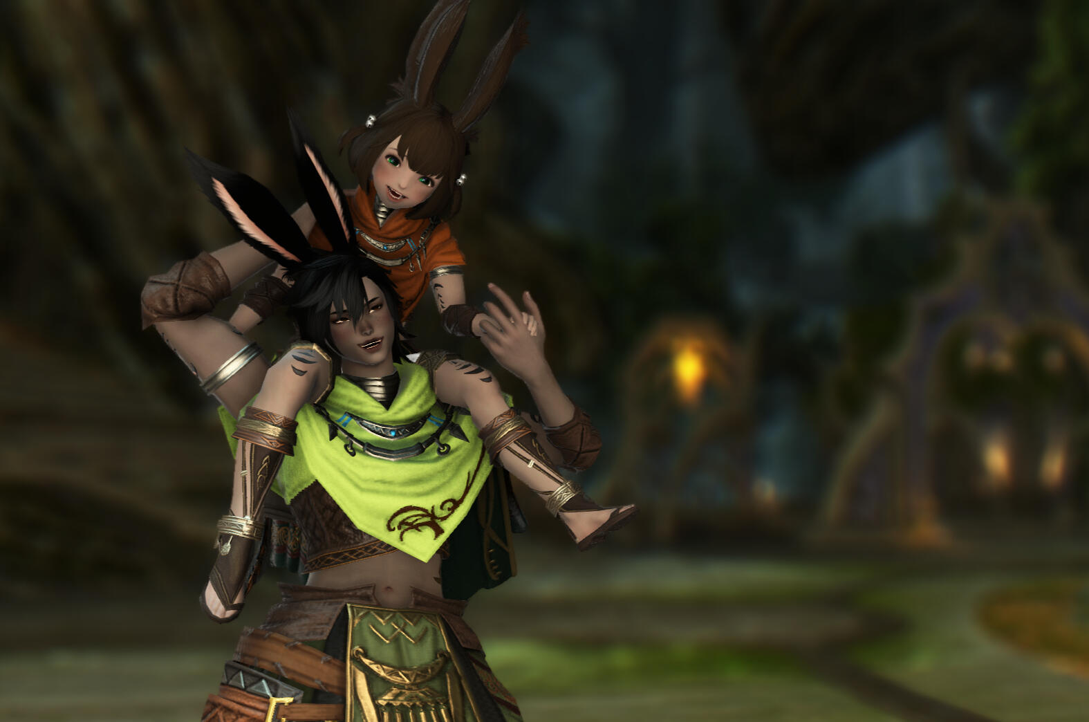 The thick boughs of Lorass were a solid barrier against the bright summer sun. Laughter echoed among the branches as children dashed between root and bush, dappled sunlight dancing on their shoulders. Homes were nestled above the ground, held aloft by strong trunks and Viera-made supports, creating shelter for the people of the Dei-Ijla tribe.